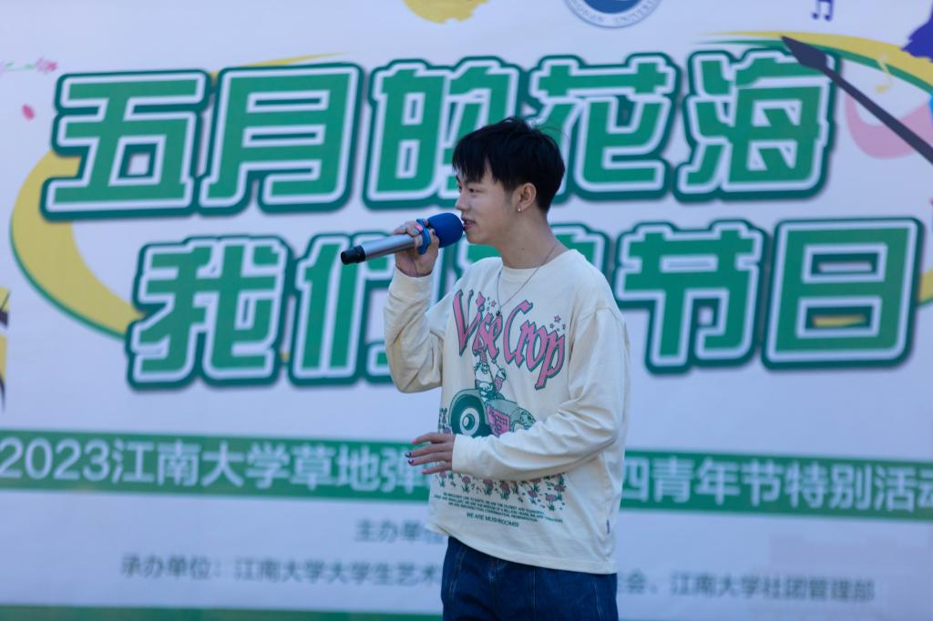 五四风雷,激荡百年;奋斗精神,一脉相承。为弘扬五四精神,营造良好校园文化氛围,奏响新时代的青春赞歌。五四前夕,由校团委主办、校大学生艺术团承办的“五月的花海·我们的节日”2023草地弹唱会·五四青年节特别活动在蠡湖校区西北操场顺利举办。