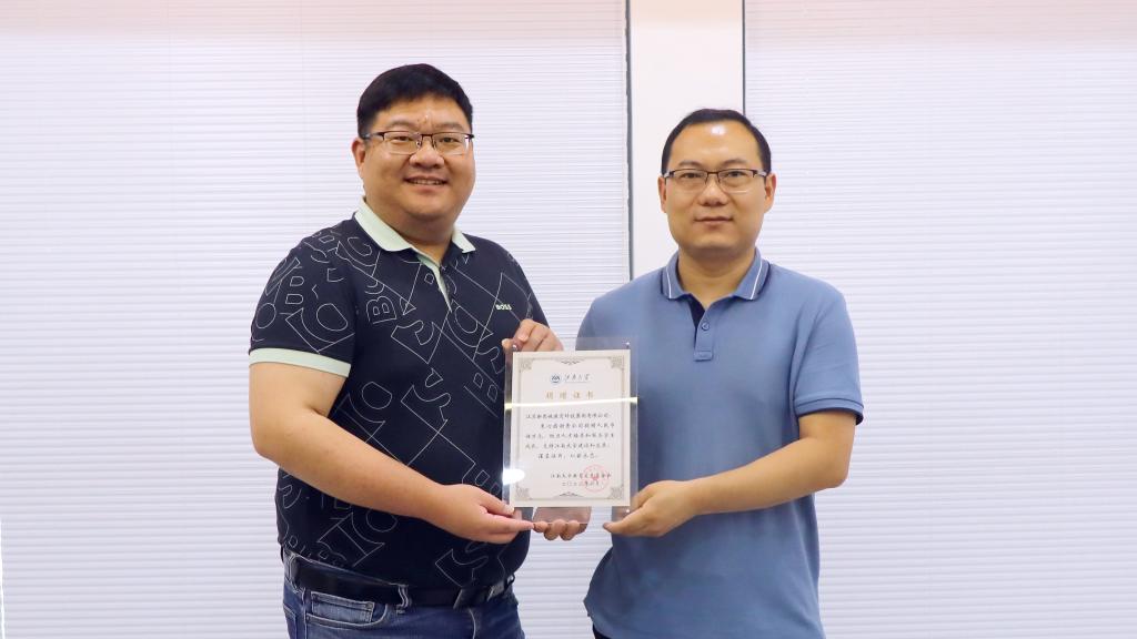 倪松涛、王斌为获奖师生颁发了荣誉证书。任增亮为江苏新思域教育科技集团有限公司颁发捐赠证书。