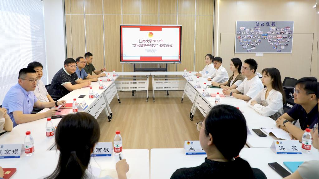 魏珍吉宣读了《关于2022年度“江南大学杰出团学干部奖”的表彰决定》。朱伟、洪筱、王璁、赵丽敏、夏京璟等五名教师及江安、李睿璇、马欣悦、刘桢炜、朱昊彧等五名学生获评2022年度“江南大学杰出团学干部奖”。
