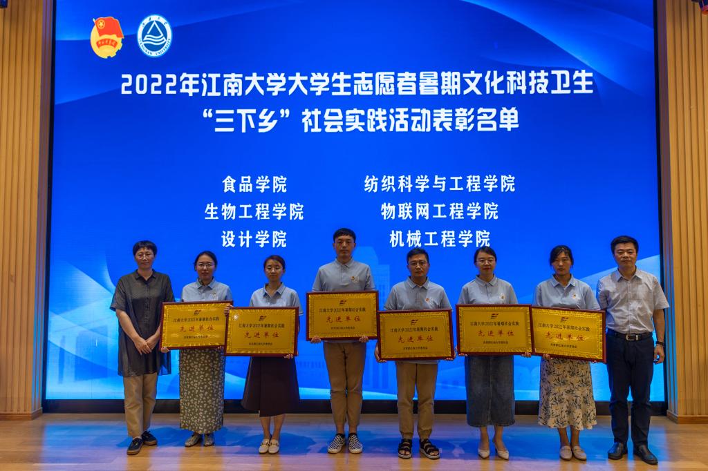 仪式上,李佳敏、周伟涛为2022年暑期社会实践先进单位颁奖。魏珍吉部署我校2023年暑期社会实践工作。单云婷发布2023年暑期社会实践重点项目团队。侯勇、王小燕、任增亮分别为学校招生宣传专项、“思政课”实践教学专项、志愿公益专项社会实践授旗。无锡医学院党委副书记、副院长包羽,商学院教授谢玉梅,设计学院井冈山专项团队负责人广茂池分别作为学院代表、指导教师代表和学生代表进行交流发言。