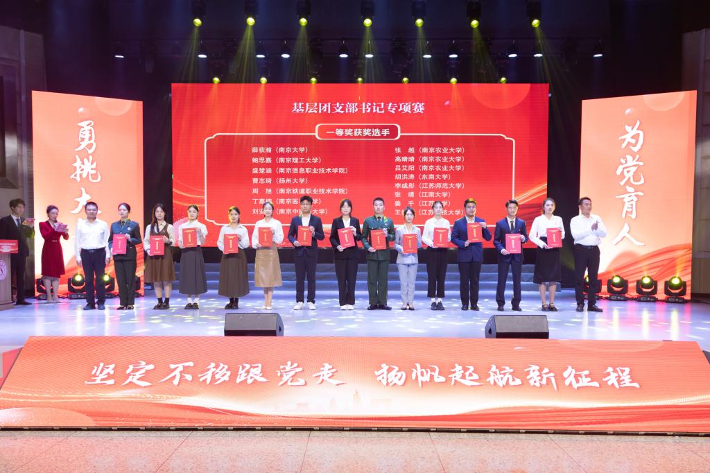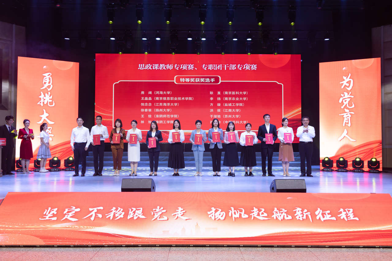 本次比赛由共青团江苏省委、中共江苏省委教育工委、新华日报社、江苏省学生联合会共同主办,经过校赛选拔和省赛初赛评审,共有来自112所高校的400名师生团干部、青年教师入围省级决赛。通过主题团课、思政课现场展示,案例展示,互动问答等环节的激烈角逐,我校物联网工程学院分团委书记洪筱荣获专职团干部专项赛特等奖;法学院农村发展专业2022级硕士生张靖荣获基层团支部书记专项赛一等奖,化学与材料工程学院应用化学专业2021级本科生于杨露、食品学院食品质量与安全专业2020级本科生艾力木热提·努尔买买提、人文学院音乐与舞蹈学专业2022级硕士生穆元炜荣获基层团支部书记专项赛二等奖;党委学生工作部副科级干部陈梦荣获兼挂职团干部和青年教师专项赛三等奖。
