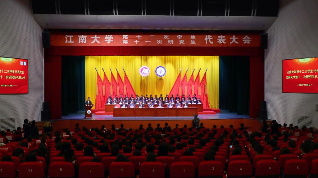 开幕式后,本科生代表和研究生代表分别进行第十二次学生代表大会第一次全体会议和第十一次研究生代表大会第一次全体会议。广茂池代表第十一届学生会向大会作了题为《砥志研思新征程、脚踏实地共奋进,在全面推进中国式现代化的奋斗中贡献江南力量》的工作报告,吕铃怡代表第十届研究生会向大会作了题为《踔厉奋发践使命、挺膺担当向未来,以青春之姿谱写江南新篇章》的工作报告。他们分别回顾总结了过去一年校学生会、研究生会的工作,并提出未来一年校学生会、研究生会的工作方向和目标。