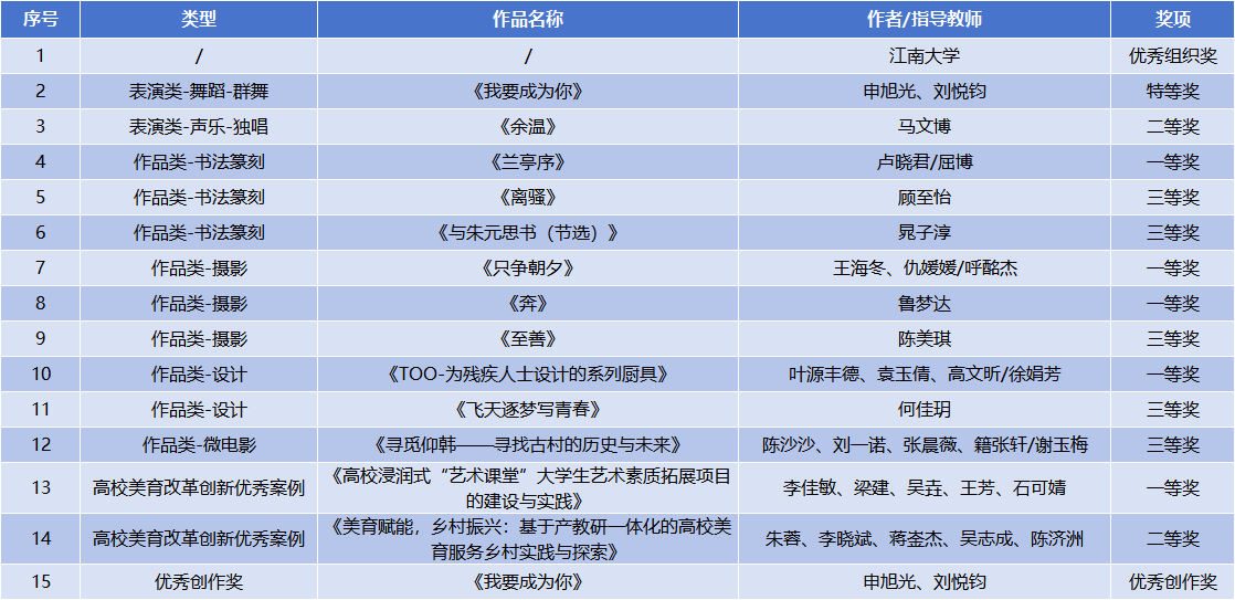 以美育人,以文化人。江南大学历来重视美育教育工作,坚持“立德树人”根本宗旨,以社会主义核心价值观为引领,打造富有“江南”特色的美育工作品牌,提高学生审美和人文素养,培养德智体美劳全面发展的社会主义建设者和接班人。