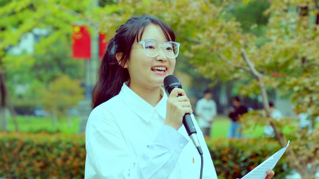 食品学院2024级本科生董欣然进行主题演讲《庆国之繁荣,承青年担当》。她表示青年的使命来源于历史的传承,来源于时代的召唤,作为新时代的新青年,要勇立时代潮头,用拼搏与汗水,书写壮美华章。
