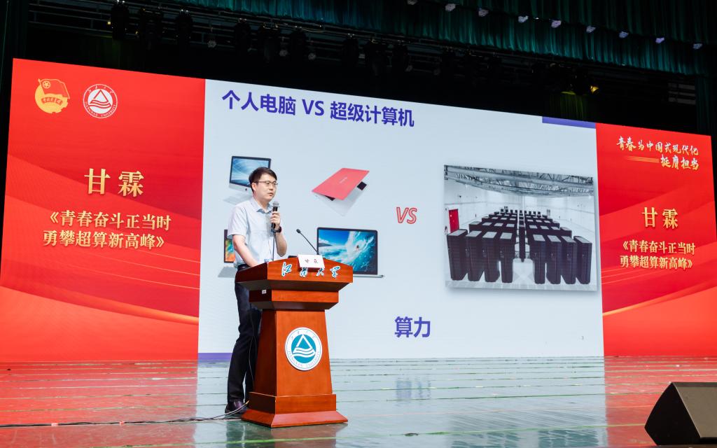 最后,甘霖进行开班第一讲。他以《青春奋斗正当时 勇攀超算新高峰》为题,介绍中国超算这一“国之重器”的发展历程与广泛应用,勉励大家胸怀国之大者,做有信仰、有理想、敢担当的青年一代。