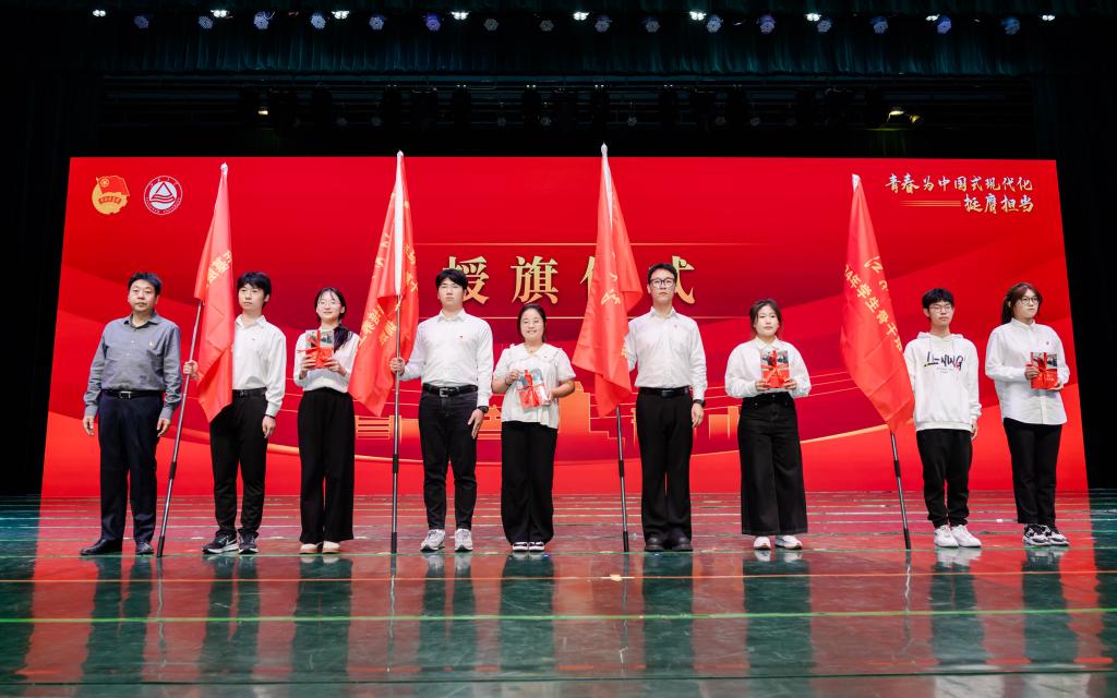 倪松涛向培训班代表授旗并赠送书籍。他指出,青年是标志时代的最灵敏的晴雨表,团学骨干作为校党委联系青年学生最为牢固的桥梁纽带,要在“三全育人”的工作格局中发挥更大作用,更好地把团员青年、班级同学紧紧团结起来、组织起来、动员起来,为学校高质量发展服务。他要求大家把准政治方向,坚定理想信念,练就过硬本领,把握好学习机会,传播好党的创新理论。