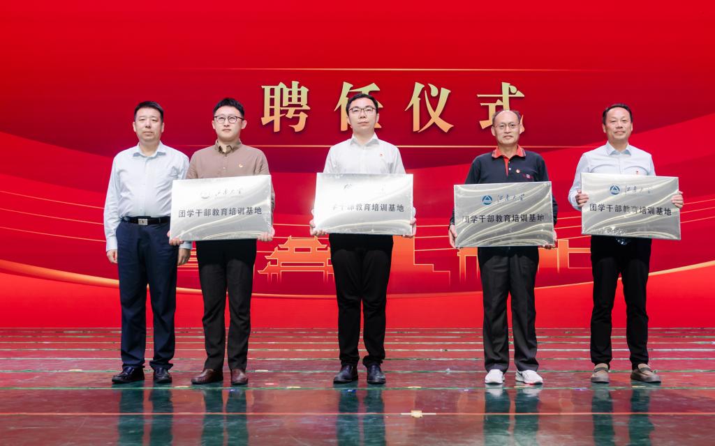 张梁向校内外教育培训资源进行基地授牌和导师聘任,授予团惠山区委、惠山区文商旅集团、滨湖国有资产运营(集团)有限公司和季翼农烈士故居等单位江南大学团学干部教育培训基地,聘任任卓冉、蔡瑶、孙晨光、洪筱和胡晓丹等江南大学团学干部理论学习与宣讲校内指导教师。
