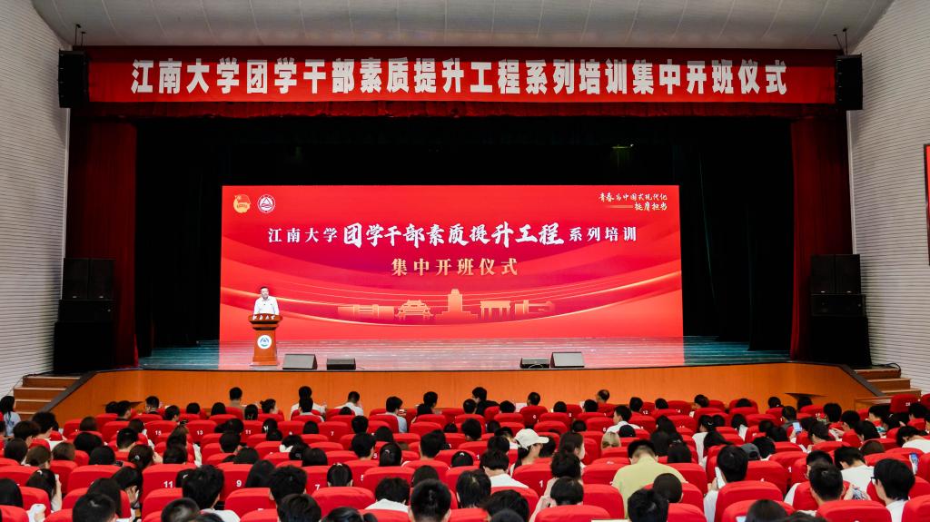 10月13日下午,江南大学团学干部素质提升工程系列培训集中开班仪式在文浩馆观众厅举行。校党委常委、副校长倪松涛,校长助理兼党委组织部部长张梁,团江苏省委副书记(兼职)、国家超级计算无锡中心主任助理、研发中心主任甘霖,团惠山区委书记宋睿鑫等出席活动。全体专兼职团干部、“青年马克思主义者培养工程”第十七届培训班学员、新生班团培训班成员、基层团支部书记调训班成员和学生骨干培训班成员参加。活动由校团委书记魏珍吉主持。