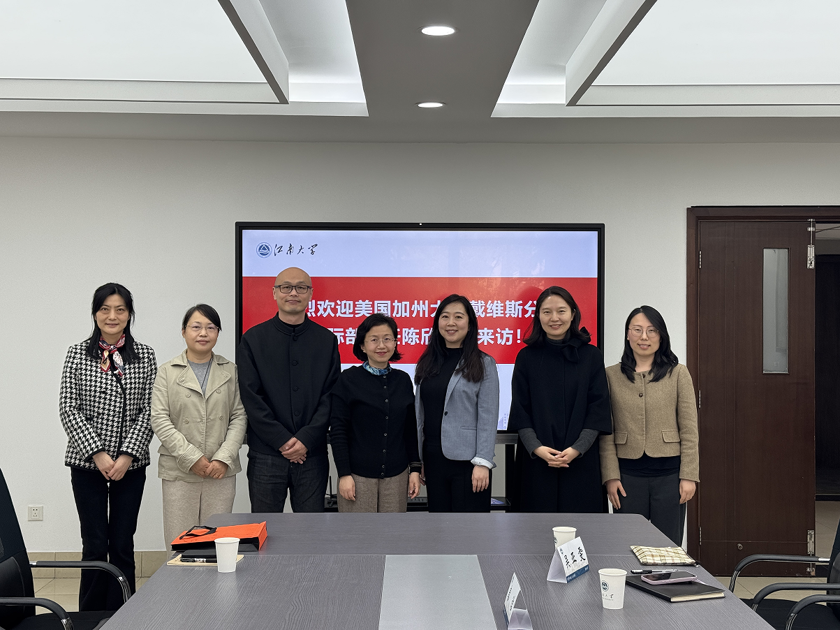 4月1日,美国加州大学戴维斯分校国际部主任陈欣访问我校。我校国际交流合作处处长倪晔、副处长秦洁,设计学院副院长周林,食品学院院长助理吕小妹,以及相关负责老师参加会谈。