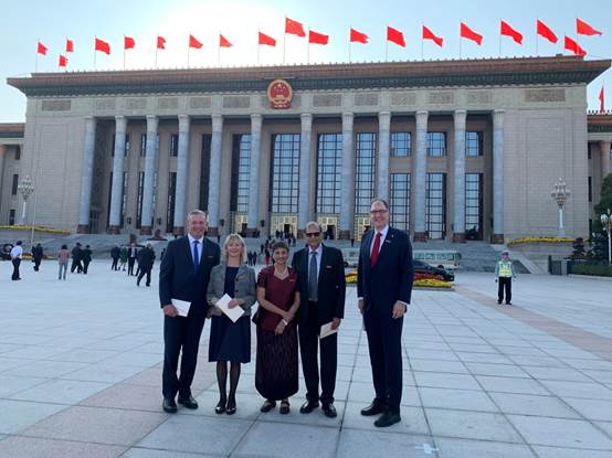 受中华人民共和国政府邀请,我校五位外国专家,爱尔兰皇家科学院院士、考克大学Paul Ross教授夫妇,新加坡工程院院士、加拿大麦吉尔大学Arun S. Mumjumdar教授,英国皇家工程院院士、萨里大学Joseph Kittler教授及德国马克斯-普朗克研究所所长Peter Seeberger教授,赴北京参加中华人民共和国成立70周年庆祝活动。