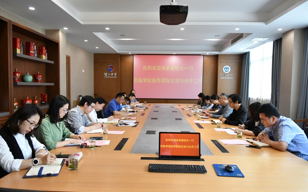 在调研会上,徐岩在听取调研学院的工作汇报后,充分肯定了各学院为推进国际化工作所做的努力和成果,分别就调研学院所存在的问题进行了总结分析,提出针对性指导意见,并对相关工作进行了部署。他指出,在今后的各项工作中,学院班子要加强思考,创新具有学院自身特色的国际交流模式,将谋划国际交流工作与学科发展结合起来;关注国际大的格局变化,寻找突破口,聚焦高水平合作伙伴,聚焦高水平成果表达,培养高水平国际化人才,助推“双一流”学科建设,提升学校国际影响力。