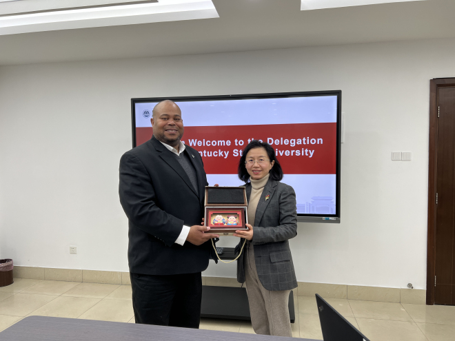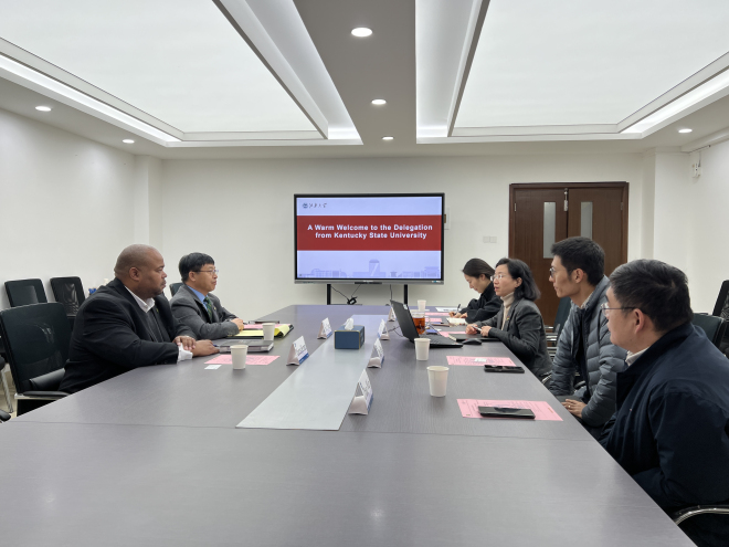 12月10日,美国肯塔基州立大学全球战略与国际事务副教务长Eric Yang博士,农业、健康和自然资源学院院长Marcus Bernard博士一行访问我校,我校国际交流合作处处长倪晔,食品学院副院长赵伟以及外国语学院副院长张鹏参加会谈。会议由国际交流合作处副处长秦洁主持。