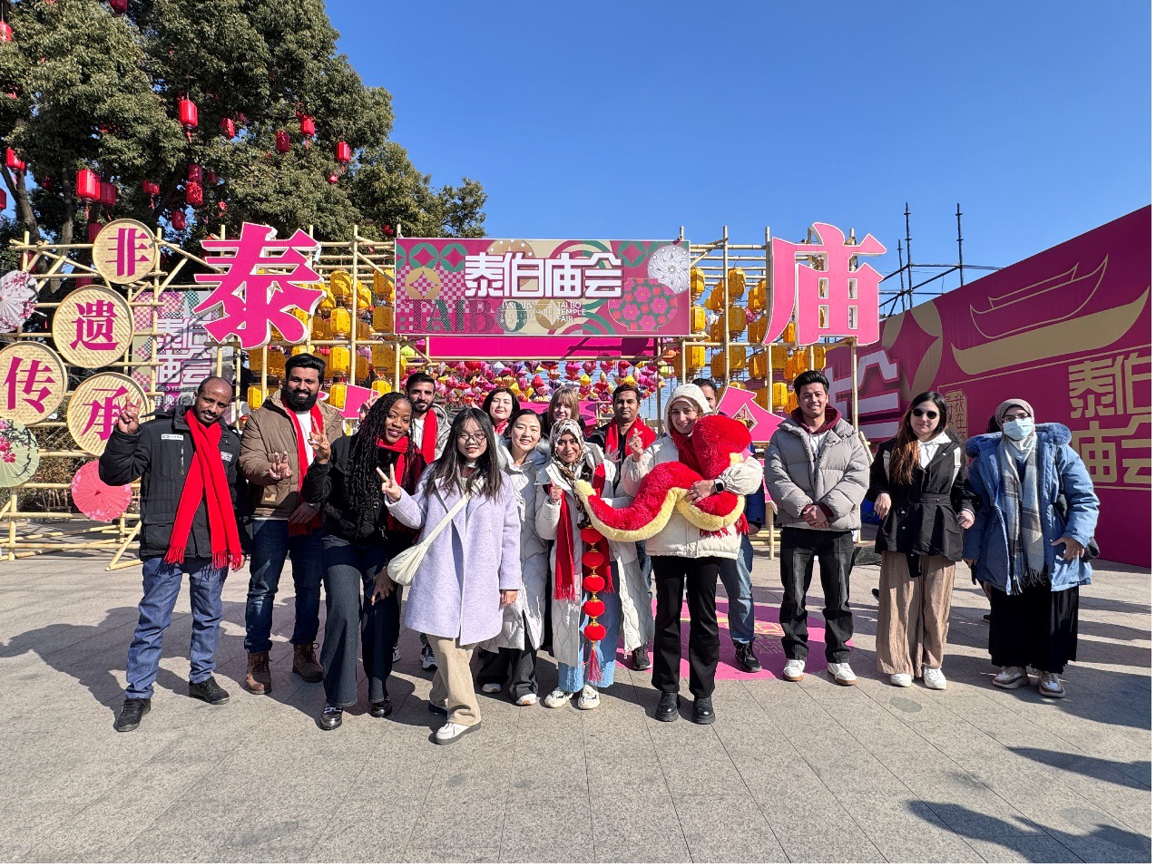 今年是阿富汗留学生马云第二次在无锡过春节,他说:“无锡这座城市的人文气息和自然风光都让我深深着迷,所以我选择留在无锡过年。学校组织的写春联、做花灯等新年活动特别棒,让我感受了中国的年味,结识了很多新朋友,在异国他乡感受到家的温暖。”埃及留学生莎莎是工商管理专业新生,她说:“来中国5个月,一直想感受中国文化,尤其春节。今天如愿啦,看到很多有特色的活动。感觉到中国人的友善,都热情欢迎打招呼,让我更爱中国、更爱中国人啦!”食品学院的巴基斯坦博士留学生睿泽说:“泰伯庙会是充满无锡传统历史和文化交融的活动,是一次充满了鲜艳色彩、丰富传统和节日气氛的迷人体验。让我有机会与当地人互动,了解无锡的历史,并沉浸在中国文化历史遗产中。”
