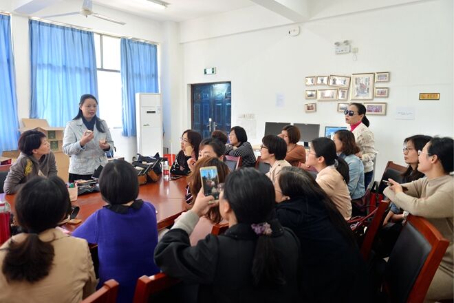 4月17日下午,教学评估与教师卓越中心与外语学院教师卓越分中心联合举办的《新媒体时代下教师品牌形象的设计》专题讲座在文科楼B303会议室举行。外语学院女教师聚集一起认真聆听纺织服装学院形象设计专家徐莉的讲解。
