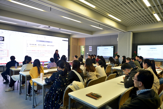11月4日下午,我校“第九届青年教师教学竞赛”专题培训在智慧教学工作站(2D104)举办。培训邀请了第五届全国高校青年教师教学竞赛决赛理科组一等奖获得者、河海大学理学院物理实验中心副主任向圆圆,江苏省第二届本科高校青年教师教学竞赛文科组一等奖获得者、设计学院张明山,江苏省第三届本科高校青年教师教学竞赛医学组一等奖获得者、医学院吴郁老师作专题分享。本次培训采取“线上直播+线下讲座”的形式,经学院初赛选拔、拟参加校赛的近60位青年教师参与了交流和研讨。