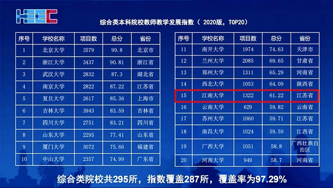 据悉,2020版的本科教师教学发展指数与2019版相比,新增了1个二级指标、13二级指标,全国普通高校总榜单、综合类本科院校分榜单覆盖率分别为98.08%、97.29%,同比均有所上升。指数将有助于高校更科学、全面地把握本校教师教学发展生态,为高校进行自我诊断、对标诊断、持续改进提供有效参考。