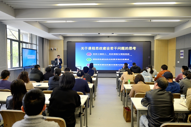 李梁从思政课程与课程思政,课程思政建设的目标要求和内容重点,课程思政建设的基本思路与实践路径三方面阐述对“课程思政”若干问题的思考。他以上海大学面向全校本科学生开设的通识选修课《大国方略》为例,介绍上海高校“课程思政”建设主要方法和成功经验。讲座中,李梁结合具体课程案例,讲解了课程思政设计思路,他指出,全面推进课程思政建设是落实立德树人根本任务的战略举措,“课程思政”是高校思想政治教育教学改革的内在要求,要在不同学科专业的课程中发掘思想政治教育资源,各类课程与思想政治理论课同向同行,向学生传递立德树人的价值引领和思想指导,实现全员育人、全程育人、全方位育人。