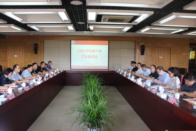 9月30日下午,我校挂职干部交流座谈会在行政楼B307会议室举行。校党委书记朱庆葆,校党委常委、组织部部长张影陆,校长办公室主任张光生,产业技术研究院院长张梁,党校专职副校长兼组织部副部长张海峰等出席座谈会。我校部分援疆干部、省派“第一书记”挂职干部、派驻无锡市(区)级机关挂职干部,以及参加省科技镇长团第11批和第12批成员参加了座谈交流。座谈会由张影陆主持。