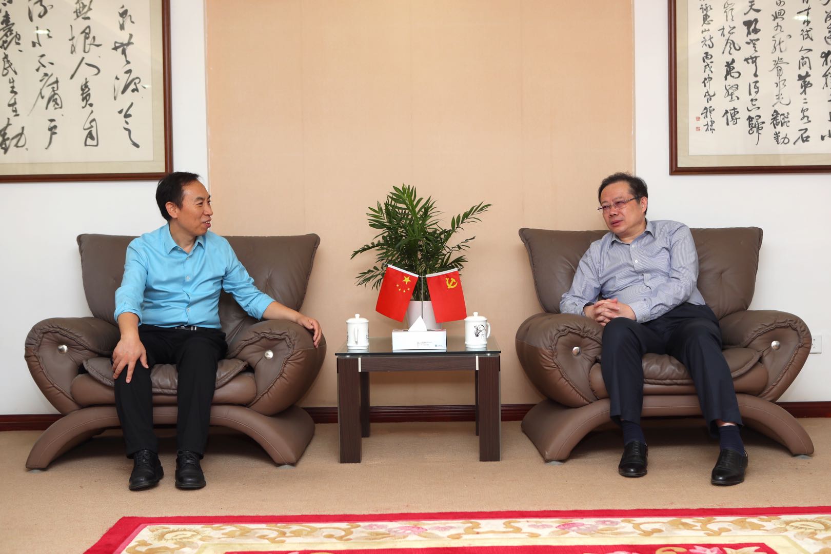 朱庆葆代表学校对于京天一行到校交流指导干部教育工作表示热烈欢迎,对国家教育行政学院多年来对我校干部培训工作的关心和支持表示感谢,并重点介绍了我校依托中国教育干部网络学院开展网络培训和日常干部教育工作的基本情况,同时还详细介绍了近期学校开展举办的优秀年轻干部培训情况等。