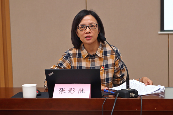 张影陆就《中国共产党支部工作条例(试行)》(以下简称《条例》)进行了系统解读。她指出,《条例》是我们党历史上第一部关于党支部工作的基础主干法规,它的出台具有重大意义。她介绍了《条例》出台的背景和形成过程,并结合具体示例就《条例》的重点内容作了梳理、分析和解读。她希望,支部书记认真学习掌握《条例》的具体内容和规范要求,增强贯彻执行《条例》的思想自觉和行动自觉。她还就深入开展“不忘初心、牢记使命”主题教育近期工作作了提示,希望严格按照“守初心、担使命,找差距、抓落实”的总要求,抓好支部学习教育“九个一”,建好建强基层党支部,筑牢战斗堡垒。