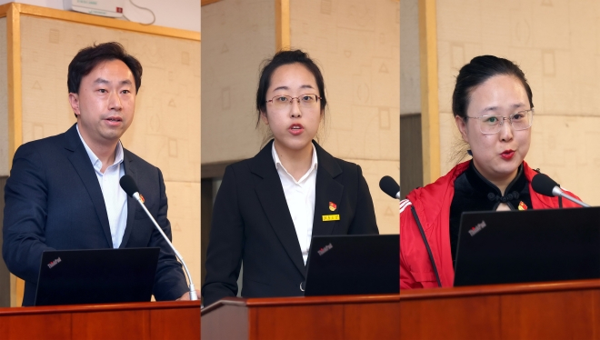 在交流发言环节,“标杆院系”代表、生物工程学院党委书记王维,从形成党组织动员系统、改进支部建设痛点、抓牢意识形态工作、让立德树人落地生根等方面全面介绍了学院创建标杆院系的整体情况和取得的成效,分享了学院党委强化政治功能和组织力的经验做法。“样板支部”代表、法学院研究生第一党支部书记丛毅竹,从支部基本情况、支部特色做法、经验与启示三个方面,围绕“服务型基层党支部”建设目标,介绍了打造“3个党建协同育人系统”和“3项法治能源核心要素”,服务自身和社会的创建历程。“双带头人”教师党支部书记工作室代表、食品科学与技术国家重点实验室党支部胡锦华从工作室基本情况、重点任务进展情况、工作目标及保障措施三个方面,介绍了完成“五项任务”、依托“五支力量”、扩展“五个课堂”、做到“五个融合”,在共抗疫情中插上“红色旗帜”,推动工作室形成一体化育人格局的建设经验。