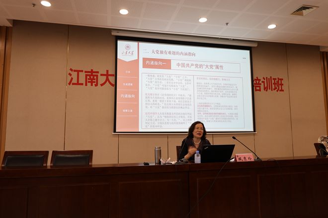 臧秀玲从大党独有难题的生成逻辑、内涵指向与破解之道三个方面进行了授课,讲述了中国共产党作为世界上最大的马克思主义政党,在管党治党方面积累了深厚的经验,大党独有难题这一命题的提出,体现了中国共产党在世界政党政治发展过程中的责任与担当。