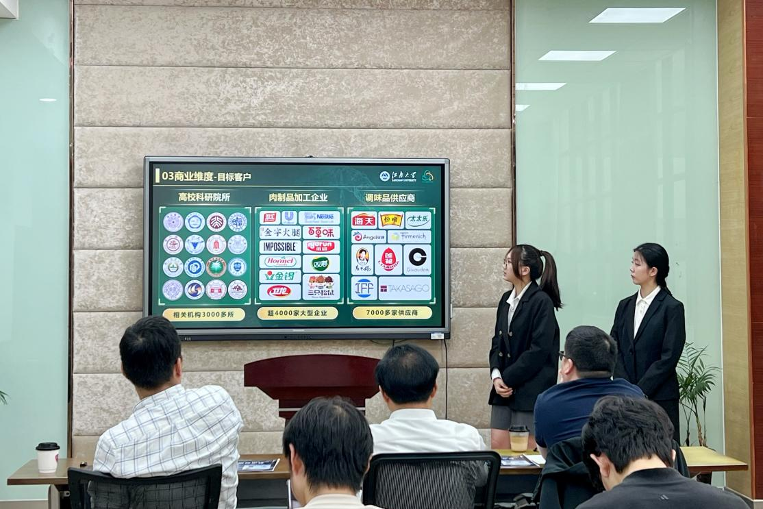 决赛现场,各参赛团队高度重视、精心准备,围绕项目特色和评审要点汇报展示,充分体现出江南学子敢闯会创的精神风貌。专家评委根据路演情况,从创新突破、教育意义、团队构成、商业模式及社会贡献等维度对参赛项目进行全方位评估、打分,并为项目未来发展提供了宝贵的意见。