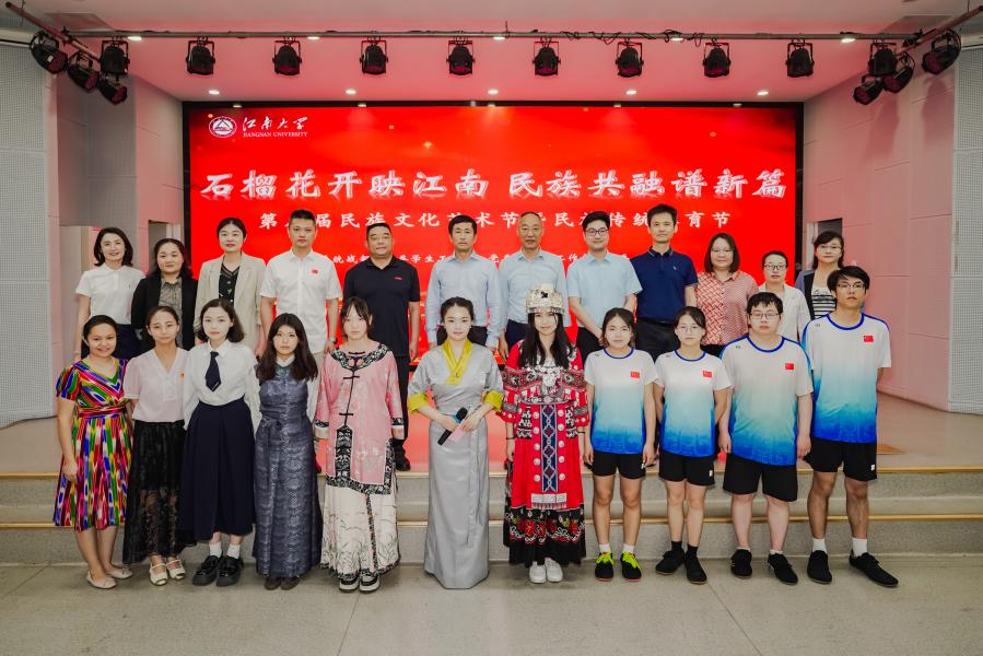 5月14日,江南大学第八届民族文化艺术节暨民族传统体育节在江南大学北区大学生活动中心开幕。江南大学党委常委、副校长戴月波,校党委常委、统战部部长朱飞,无锡市民族宗教事务局副局长程鹏,校团委书记汪超,体育部主任秦永和等领导出席。