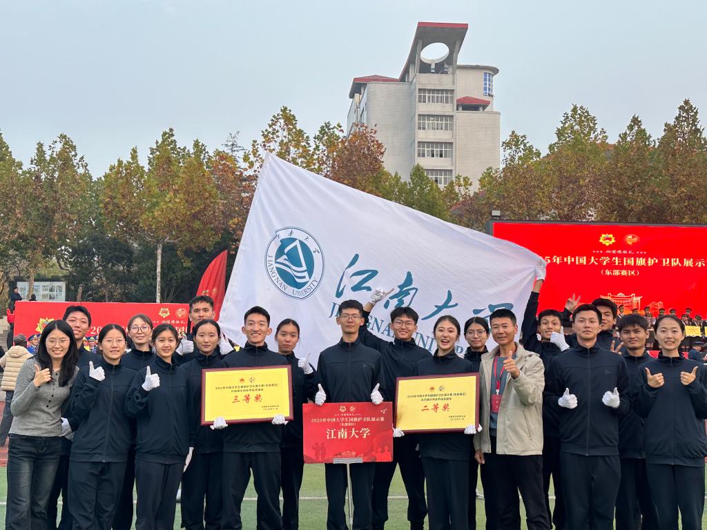 近日,2025年中国大学生国旗护卫队展示赛(东部赛区)在宿迁泽达职业技术学院举行,江南大学国旗护卫队凭借扎实的功底和顽强的精神斩获队列动作二等奖、升旗展示三等奖。