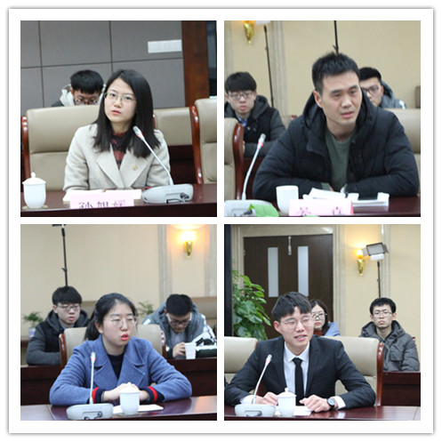 座谈会上,与会师生代表踊跃发言。物联网工程学院辅导员吴垚分享了对辅导员工作的认识以及德新育人奖对自己的精神激励作用,并表示将努力履行好辅导员职责,引领学生成长成才;商学院辅导员孙旭媛从资助工作者的观察视角,讲述了每一项奖助学金给学生的经济帮扶和精神滋养作用,并表示今后要充分挖掘资助育人的有效手段和途径,发挥奖助学金的育人功能;商学院徐子豪同学和人文学院穆新宇同学则讲述了在国家、学校和社会的帮助下,他们身上发生的自信心、进取心、感恩心、慈悲心的变化,并表示会以陈俊德先生为榜样砥砺前行,将资助这份爱心薪火相传。