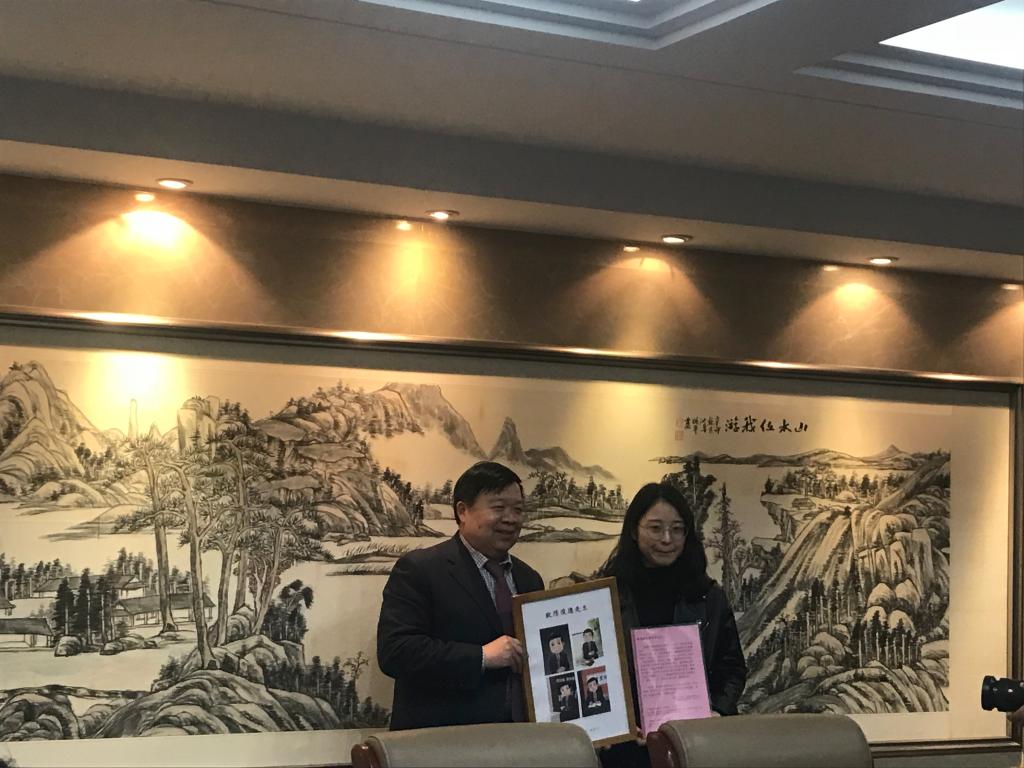 最后,2018年度德新优秀学生奖学金和德新励志奖学金的获得者设计学院学生张苑哲、王艳琼分别向陈俊德先生赠送了自己设计、创作的绘画作品以表达谢意。作品均以陈先生的工作场景为原型,一幅是俏皮可爱的卡通人像组画,一幅是现场速写素描,风格迥异,但情谊相同。