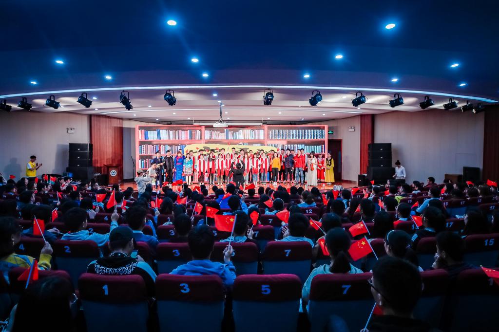 活动最后,来自商学院“丝路梦达”辅导员工作室、人文学院、物联网工程学院师生团队领唱《我和我的祖国》,将现场氛围推向高潮。活动结束后,观众们意犹未尽,主动与讲演嘉宾、活动策划团队进行交流,表达出对下一期《宝哥说》的期盼。