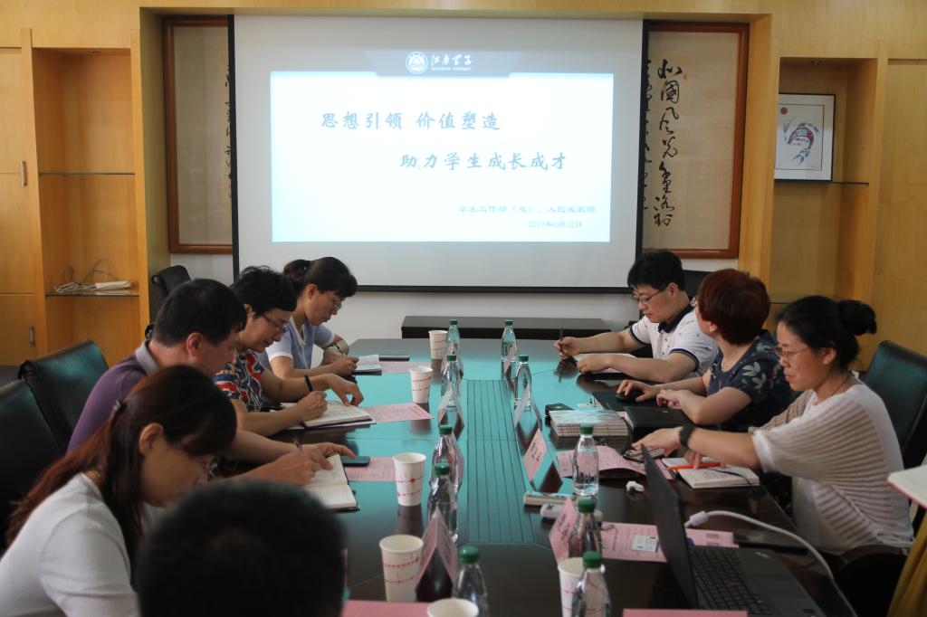 张菁燕代表学校对西安工业大学同仁的到来表示了热烈欢迎,双方通过校园宣传片对各自学校情况有了整体了解。张菁燕从“植根塑魂、思想引领”“以学为本、价值塑造”“精准聚焦、安全稳定”三个方面介绍了学校学生工作的理念、举措与成效。田卫平介绍了化工学院班主任考核体系和以导师制为依托学生四年成长学风建设举措;方俊从体育精神、学生典型、以学科竞赛推动学生成长闭环式培育等方面介绍了机械学院近年来学生工作情况。座谈中,双方就二级学院导师制实施、辅导员轮岗、辅导员考核与职称晋升机制等方面进行了深入交流与讨论,最后,张菁燕现场赠送了“宝哥说”团队理论研究成果《宝哥说思政》书籍。曹玉玲充分肯定我校在学生仪式教育、“宝哥说”辅导员工作室建设等专项工作的做法,希望今后双方进一步加强交流,共同提高。