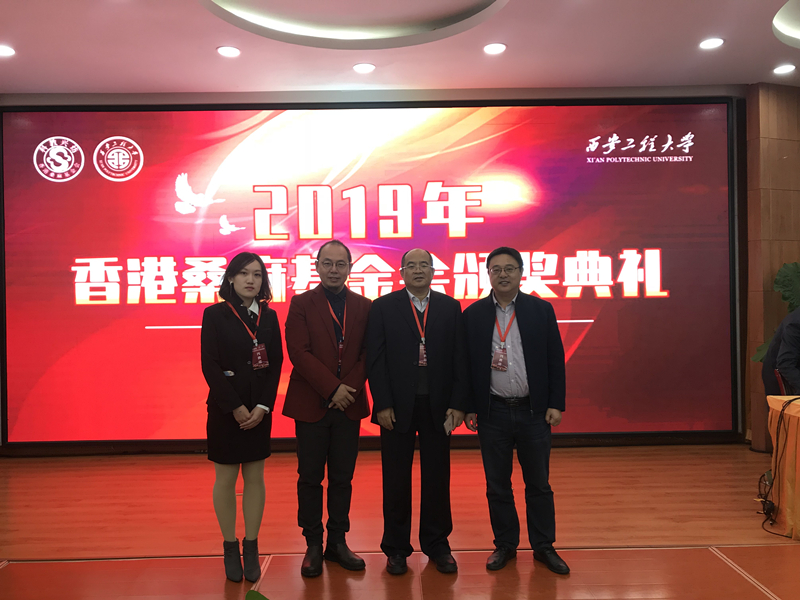 11月8日,2019年香港桑麻基金会颁奖典礼在西安工程大学举行。我校原副校长、现纺织研究所所长、江苏省功能纺织品工程技术研究中心主任高卫东教授、纺织服装学院院长付少海教授、桑麻奖教金获奖教师代表纺织服装学院潘春宇副教授、桑麻奖学金获奖学生代表纺织服装学院王铄璇同学、校学生资助中心许金红老师一行5人参加了此次颁奖典礼。