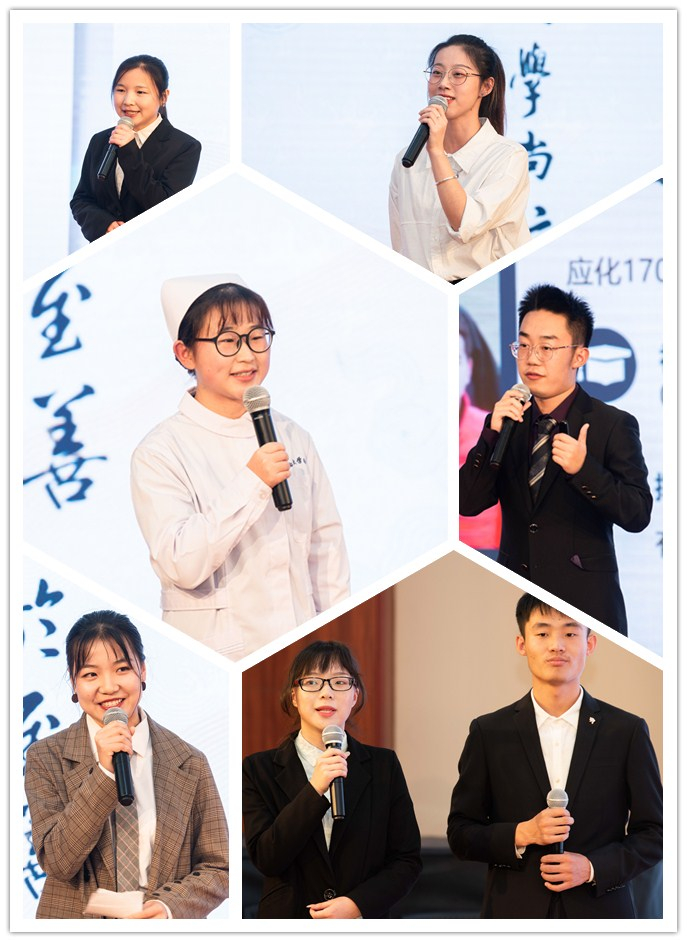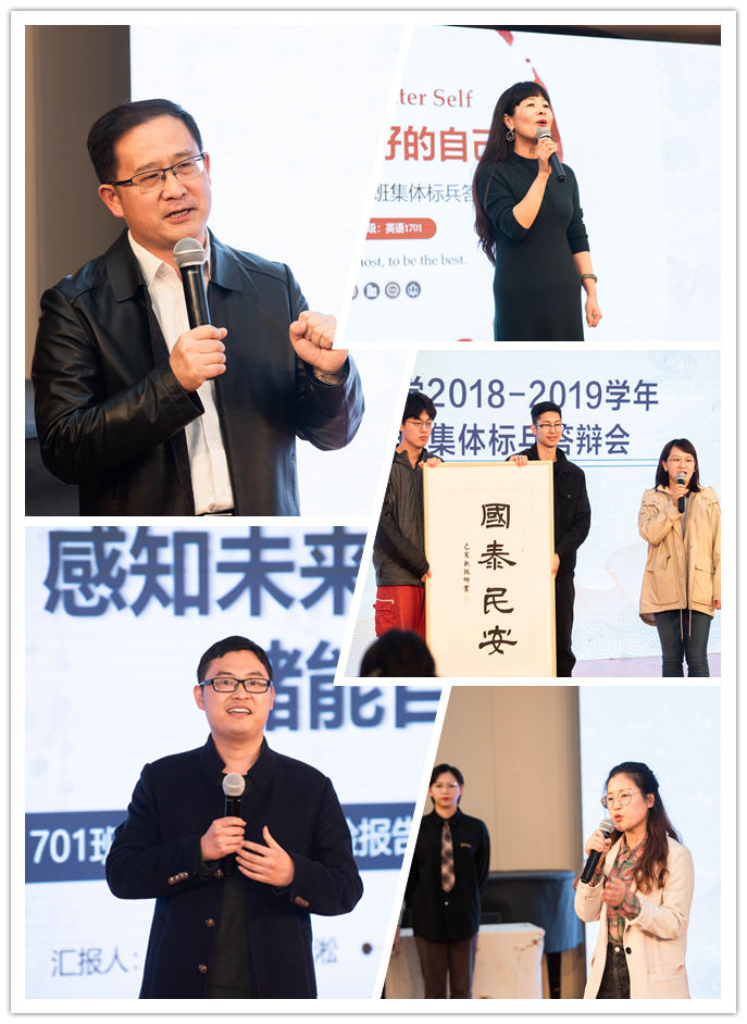 班级展评中,16个候选班级从专业特色、组织建设、成长历程、建设成效等方面进行展示,他们中有以“实验报告”的形式呈现了奇妙的班级共同体聚合反应,有以“点面结合”解开 “包装盒的形成”之谜,有以相声表演传递班级多样化的精神风貌,有以“答在江南”答题模式表现了专业特色和班级风貌,有以观影的方式演绎了班级力量与感人故事。整个展评,班级展示各具特色,精彩纷呈,展示了班级思想有凝聚力、组织有感召力、学业有奋进力、学风有成效力、建设有影响力,给在场师生留下深刻印象,赢得了阵阵热烈掌声。