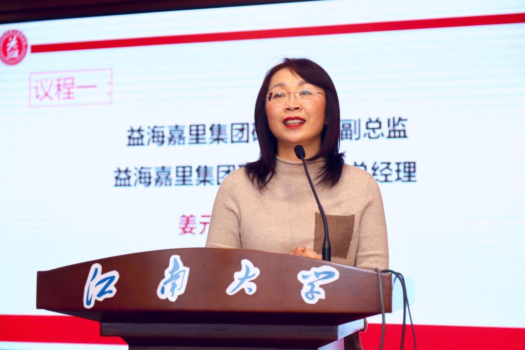 姜元荣致辞。她表达了对母校深厚的情感,希望获奖师生投身实践、勇于创新,不断学习新知识、新技术,努力成为行业的优秀人才。她表示,益海嘉里集团今后仍将以实际行动支持教育事业发展,履行企业社会责任,为师生提供更宽领域的科研实践平台。