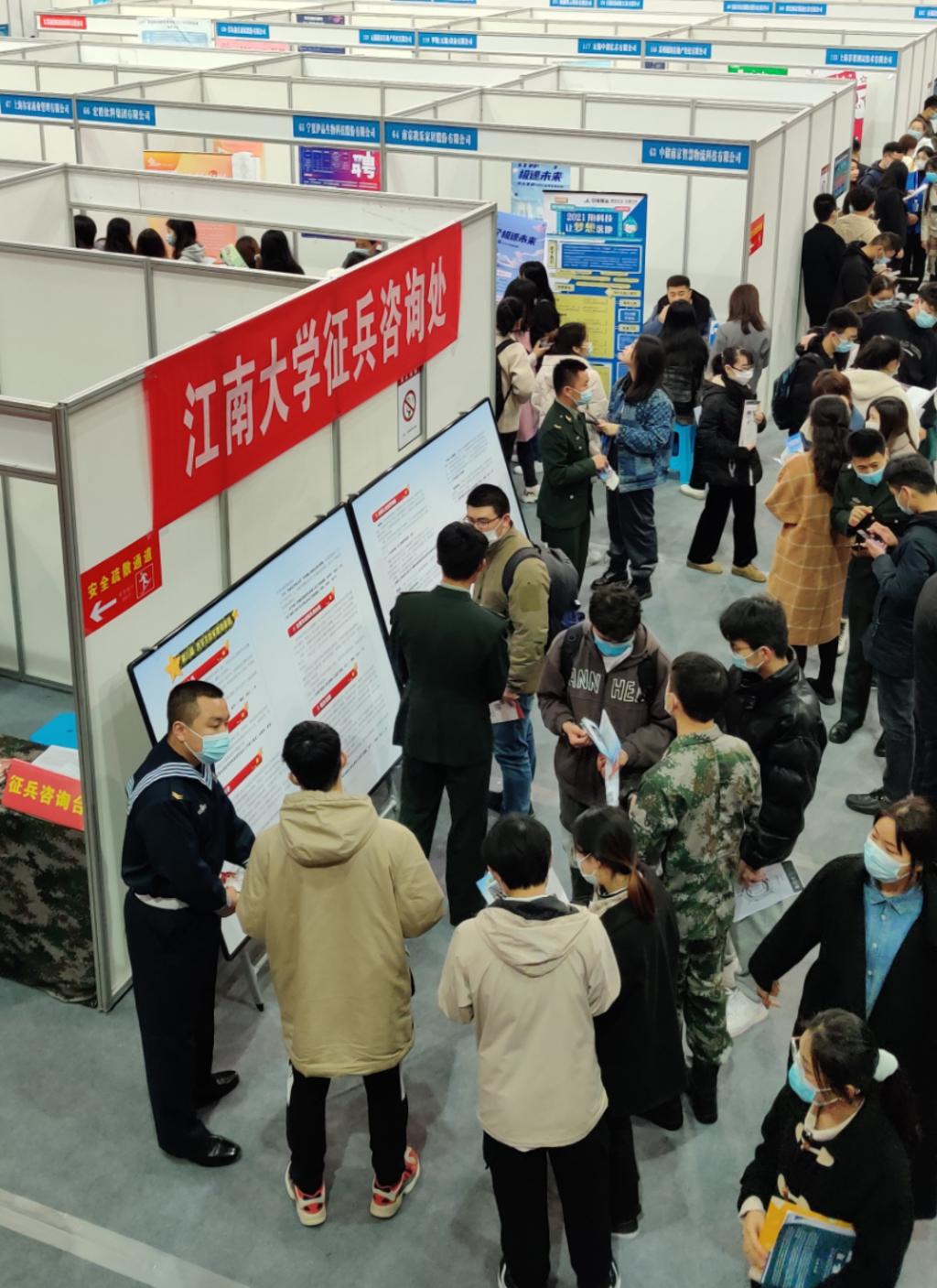 根据国家对大学生入伍的新政策,鼓励大学生积极参军入伍,不断提升兵源素质,为军队输送高素质人才,推动国防和军队现代化建设。3月20日上午,校人武部依托2021年毕业生春季大型招聘会在体育馆开展了国防教育和征兵宣传活动。校党委副书记戴月波及招就处副处长张捷英等领导莅临现场指导工作。