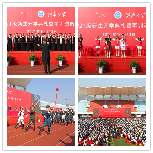 金秋十月,青春启航。10月23日上午,伴随着雄壮的国歌,江南大学2021级新生开学典礼暨军训动员大会在学校体育中心隆重举行。校党委书记朱庆葆,中国工程院院士、校党委副书记、校长陈卫,教育部党建工作联络员张福珍,驻锡武警某部支队长纪长师,校党委副书记符惠明、戴月波,校党委常委、副校长张影陆、堵国成,校党委常委倪松涛、朱飞,各学院院长及相关职能部门领导共同出席了本次典礼,典礼由张影陆主持。