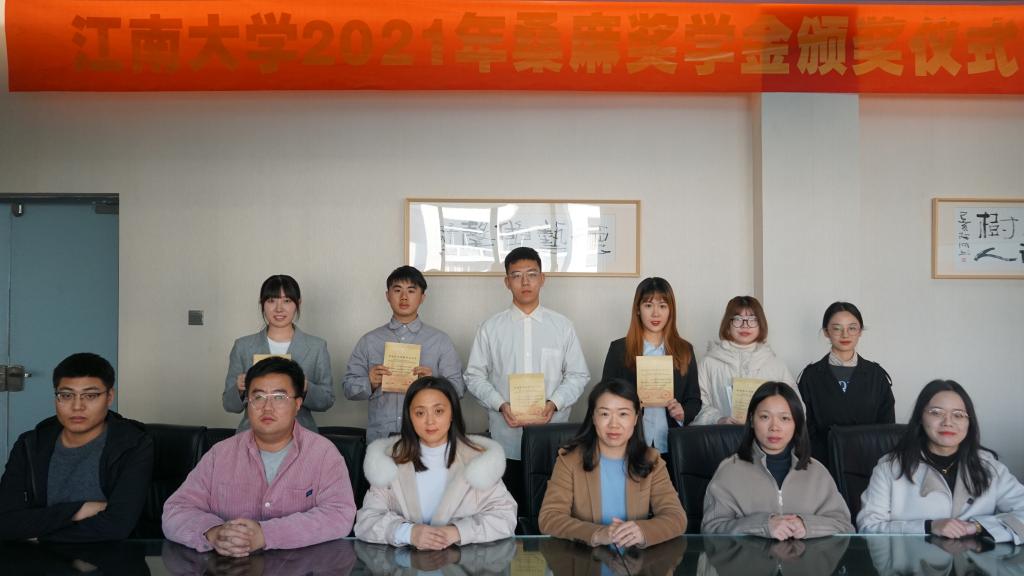 近日,江南大学2021年度“桑麻基金会”奖学金奖教金颁奖仪式分别在设计学院B304、纺织科学与工程学院A306报告厅举行。我校王平等5位教师、黄婕妤等42名同学分别获得2021年桑麻奖教金、奖学金。