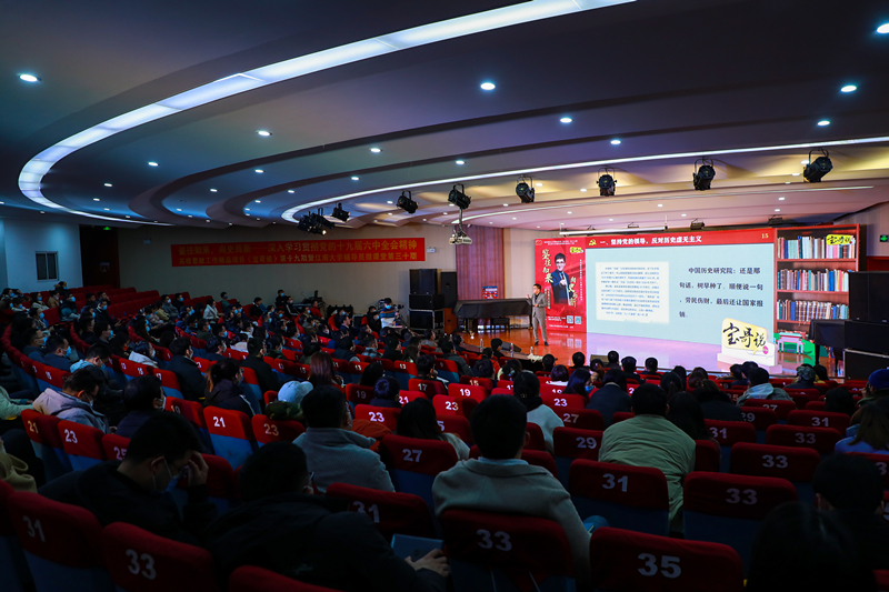 12月24日下午,教育部高校思想政治工作精品项目《宝哥说》第十九期暨江南大学辅导员微课堂第三十期在北活音乐厅成功举办。活动以《鉴往知来 向史而新——深入学习贯彻党的十九届六中全会精神》为主题,邀请马克思主义学院教授唐忠宝、副教授郑宇围绕“十个坚持”“三个历史决议”展开理论宣讲。校党委常委、副校长吴正国,校党委常委、宣传部部长倪松涛,西藏藏医药大学党委常委、副校长张红伟一行出席活动。江南大学各学院党委副书记、全体辅导员,学工、人武党支部与酿造微生物学与应用酶学研究室党支部师生党员参加了活动。活动由食品学院辅导员胡晓丹主持。