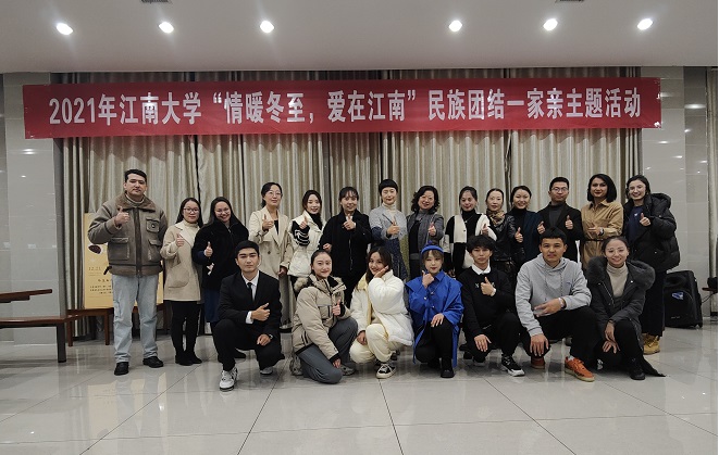 为了继续推进党史学习教育深入人心,同时认真贯彻落实党的十九届六中全会精神,弘扬中华优秀传统文化,铸牢中华民族共同体意识,营造民族团结浓厚氛围,将“民族团结一家亲”“三进两联一交友”活动落到实处,12月21日下午,在学生工作处(部)、后勤管理处的指导和帮助下,由“丝路梦达”辅导员工作室承办,校派驻教师古扎努尔、胡文波策划组织开展了“情暖冬至,爱在江南”冬至主题活动。校统战部副部长王冰、学工处副处长李荣华、学工处相关老师、各学院民族生辅导员以及部分大一新生参加了本次活动。