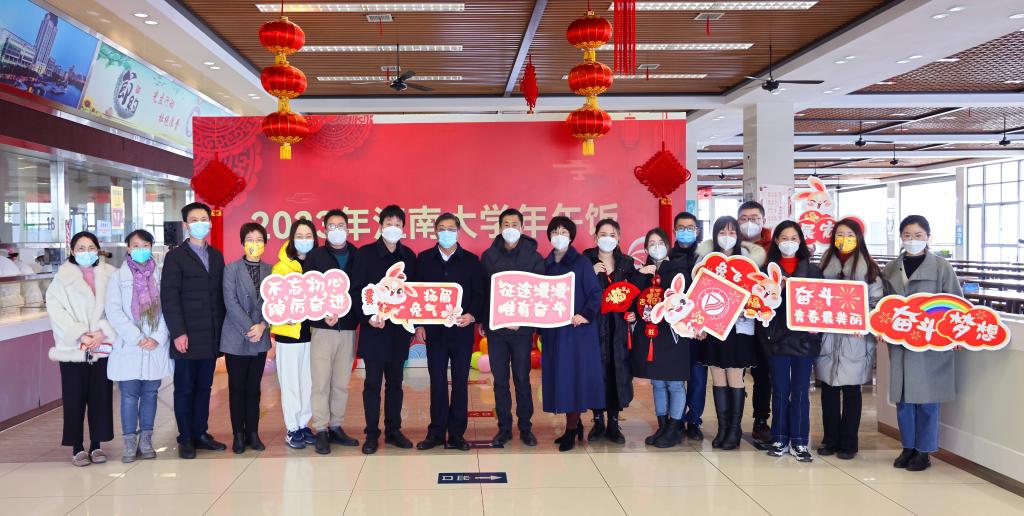一片喜庆祥和的气氛中,校领导们与留校学生们亲切交流,畅聊各地春节习俗,畅叙明日未来期盼。他们细细叮嘱同学们要多参加体育锻炼和集体活动、加强身心健康管理、多与家人朋友沟通交流;亲切勉励同学们要珍惜大好时光,少年辛苦终身事,莫向光阴惰寸功;督促学校要为留校师生做好后勤保障和人文关怀,保证留校师生在学校同样也能感受到年味、感受到温情。欢声笑语中,大家高举学校特别定制的印有“大展宏‘兔’”“‘兔’飞猛进”“征途漫漫惟有奋斗”等新年祝福语的手牌合影留念。