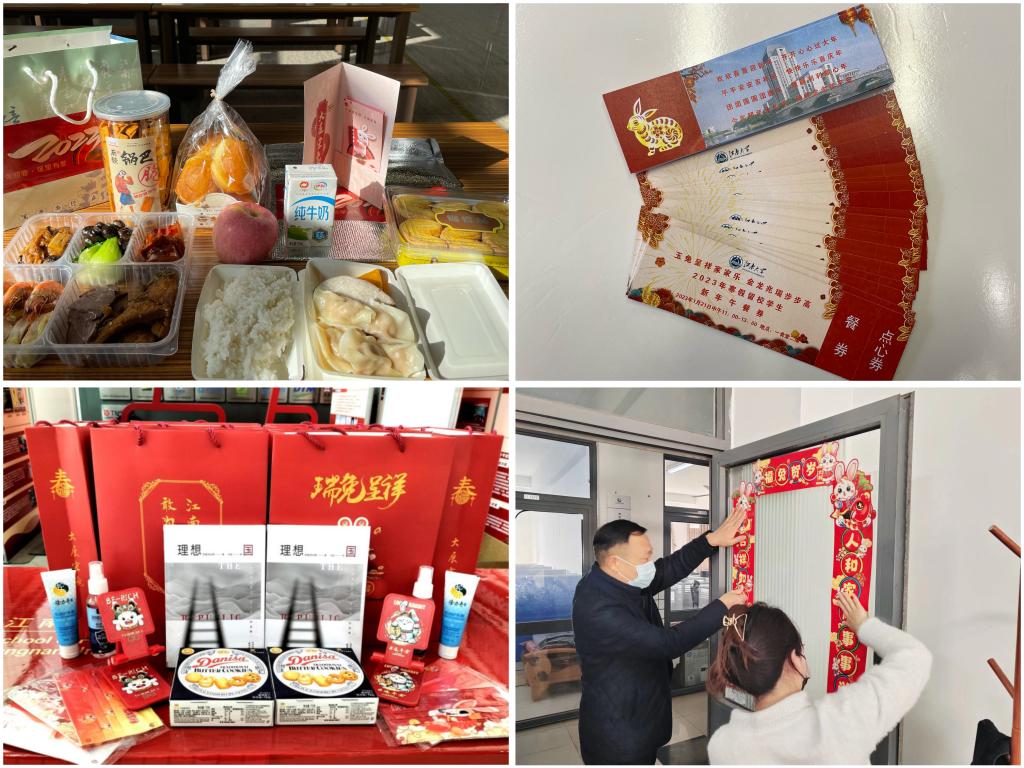 一元复始开新宇,万象更新绘新图。作别旧年,2023年的春节款款而至。今年我校共计280余名学生选择寒假留校、就地过年。学校积极做好留校学生的服务和管理工作,提供一系列暖心服务和贴心关怀,组织有趣又暖心的关爱活动,使他们在校如在家,度过一个充满江南温情的幸福新春!