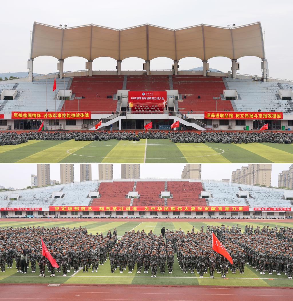 10月20日上午,2022级学生军训成果汇报大会在校体育中心举行。承训驻锡武警某部大校支队长纪长师,江南大学党委常委、副校长倪松涛,校国防教育领导小组成员单位负责人,各学院党委副书记,带训辅导员和全体2022级学生出席大会。大会由江南大学人武部副部长俞立峰主持。