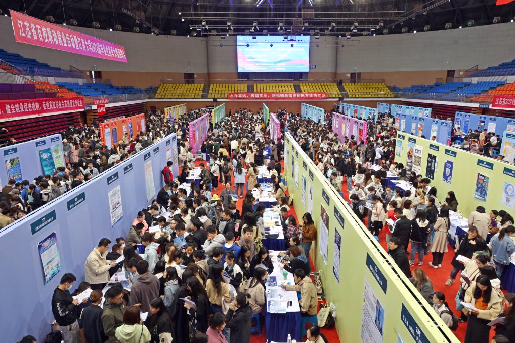 11月11日,江苏省百校联动就业活动暨江南大学2024届毕业生秋季大型招聘会在校体育馆顺利举办。