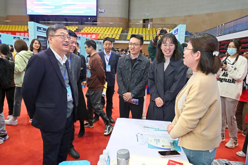 招聘会主入口处特别设置职业生涯、征兵入伍、无锡就业政策咨询专区,将职业规划与就业指导课程延伸至招聘会现场,为毕业生顺利求职精准助力。本次招聘会还设置了“访企拓岗洽谈专区”,各学院安排专人到场与用人单位接洽沟通,开辟就业合作渠道。
