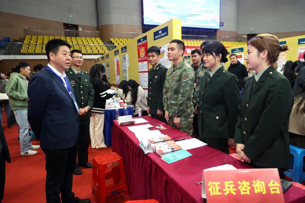 校领导与征兵咨询工作人员交流