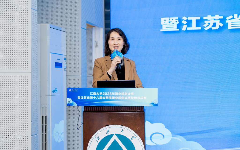 就业指导中心主任兼学生工作处副处长单筱婷为本次大赛致辞。她回顾了职业规划大赛的“变”与“不变”,表示大赛既是展示的舞台,更是赋能成长的平台。她寄语江南学子,一是要认清“规划”的内涵,在行动中提升能力;二是把握“适配”的要求,找到最适配的发展路径;三是心怀“国之大者”的信念,让个人与家国同频共振。