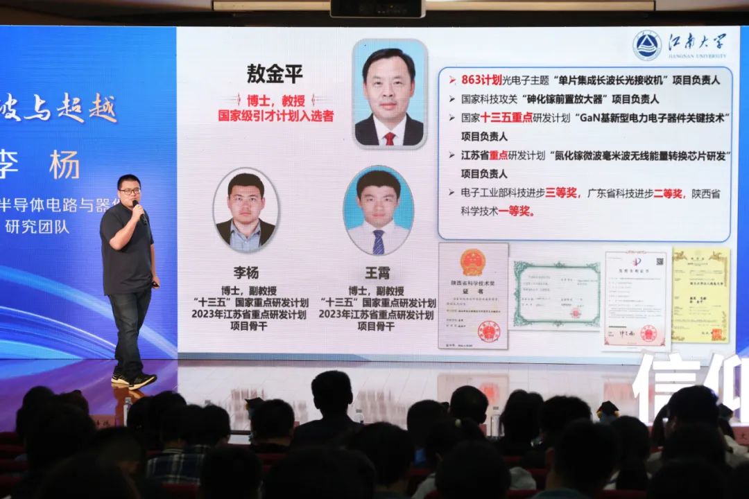 物联网工程学院副院长梁峻阁以“担当与奋进”为题,用鲜活而生动的事例讲述半导体传感器件与集成电路研究团队科技创新的动人故事。“在科技创新的征程中,年轻人应该向哪里冲锋?”半导体传感器件与集成电路研究团队始终明确自己肩负的使命和责任,以国家重要需求及“卡脖子”关键技术为科研方向,从省重点研发到核心装备应用、从某重大工程控制系统核心芯片到新型成像系统芯片,他们砥砺前行,研发了一个个国内自主可控的“中国芯”,为解决国家在集成电路领域的自主可控交出了青春答卷。