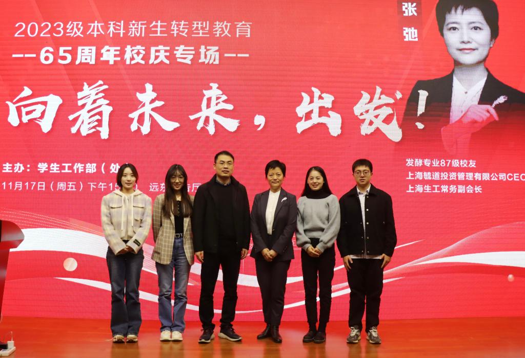 11月17日,江南大学2023级本科新生转型教育(建校65周年专场)在远东报告厅举行。我校原无锡轻工学院发酵专业87级校友,上海毓道投资管理有限公司CEO张弛女士受邀主讲。来自17个学院300余名师生现场聆听,活动由生物工程学院辅导员周杰主持。